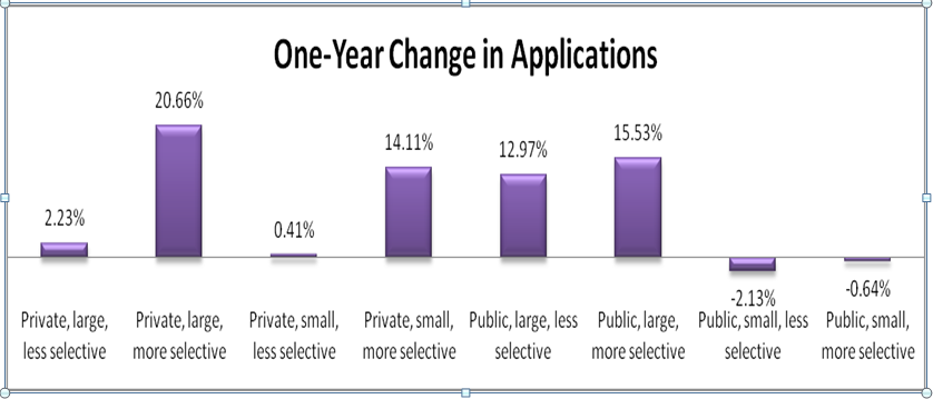 For example, New York University (NYU) received more than 100,000 applications, setting a new single-year record for private universities in the United States. Applications to Colgate, a liberal arts college in Upstate New York, saw an incredible 102% increase in applications. Here are a few other examples of the increases in application volume over the previous year: